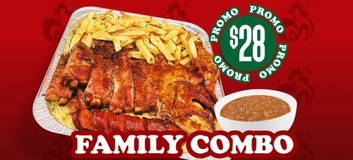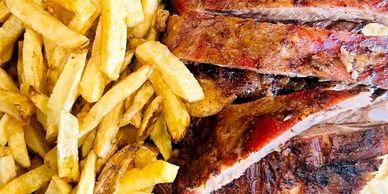 Spare ribs with choice of 1/2 or whole order. Sides include Rice & fresh cut Fries, or Rice and Beans.