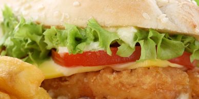 Sandwich includes cheese, onions, peppers, lettuce & tomato.